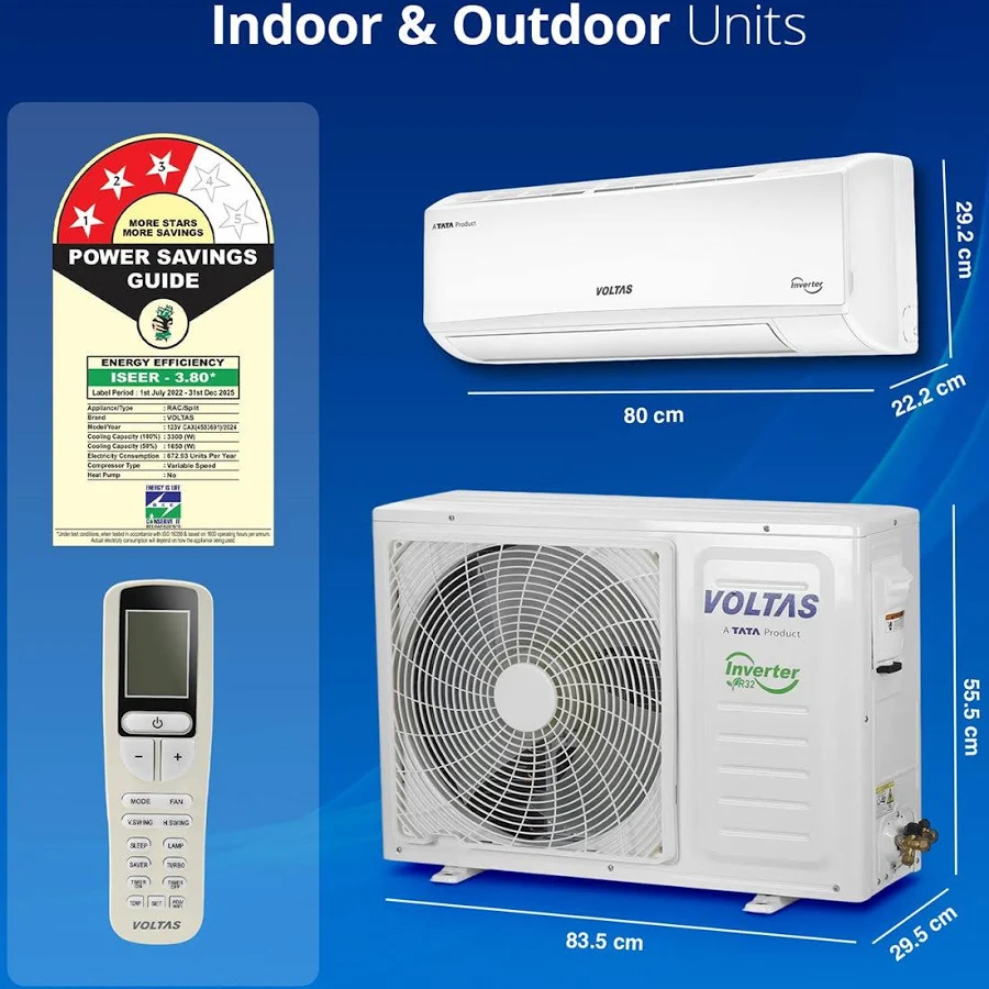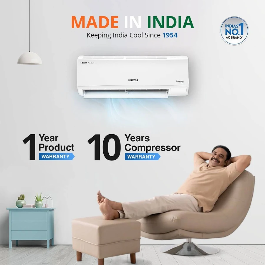 Voltas 125V Vectra CAW 1 ton 5 star inverter Split AC|4-IN-1 Adjustable mode|Energy Efficient|High ambient Cooling-cools even at 52°C|Anti dust filter with Anti-microbial coating| Copper Coil | White
